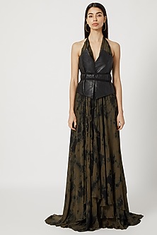 Buy Black & Olive Green Tie-Dye Gown Indian Fashion Designer Deme by Gabriella Latest Collections Available at perniaspopupshop.com