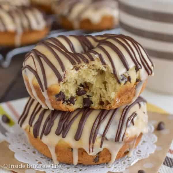 Donuts | Mocha Chocolate Chip Donuts – homemade baked donuts loaded with chocolate chips and topped with a sweet coffee glaze are a delicious breakfast choice