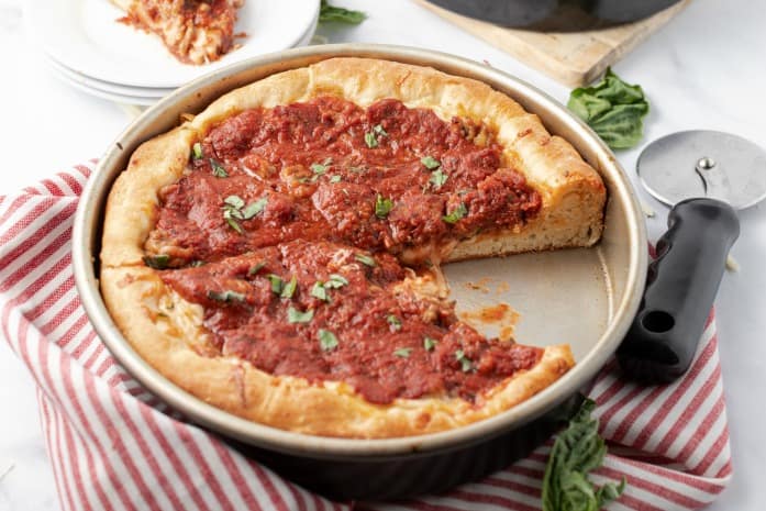 Dish Pizza | Oozing with cheese and stuffed with sausage, Chicago Style Deep Dish Pizza made at home will turn any dinner time into a party.Â