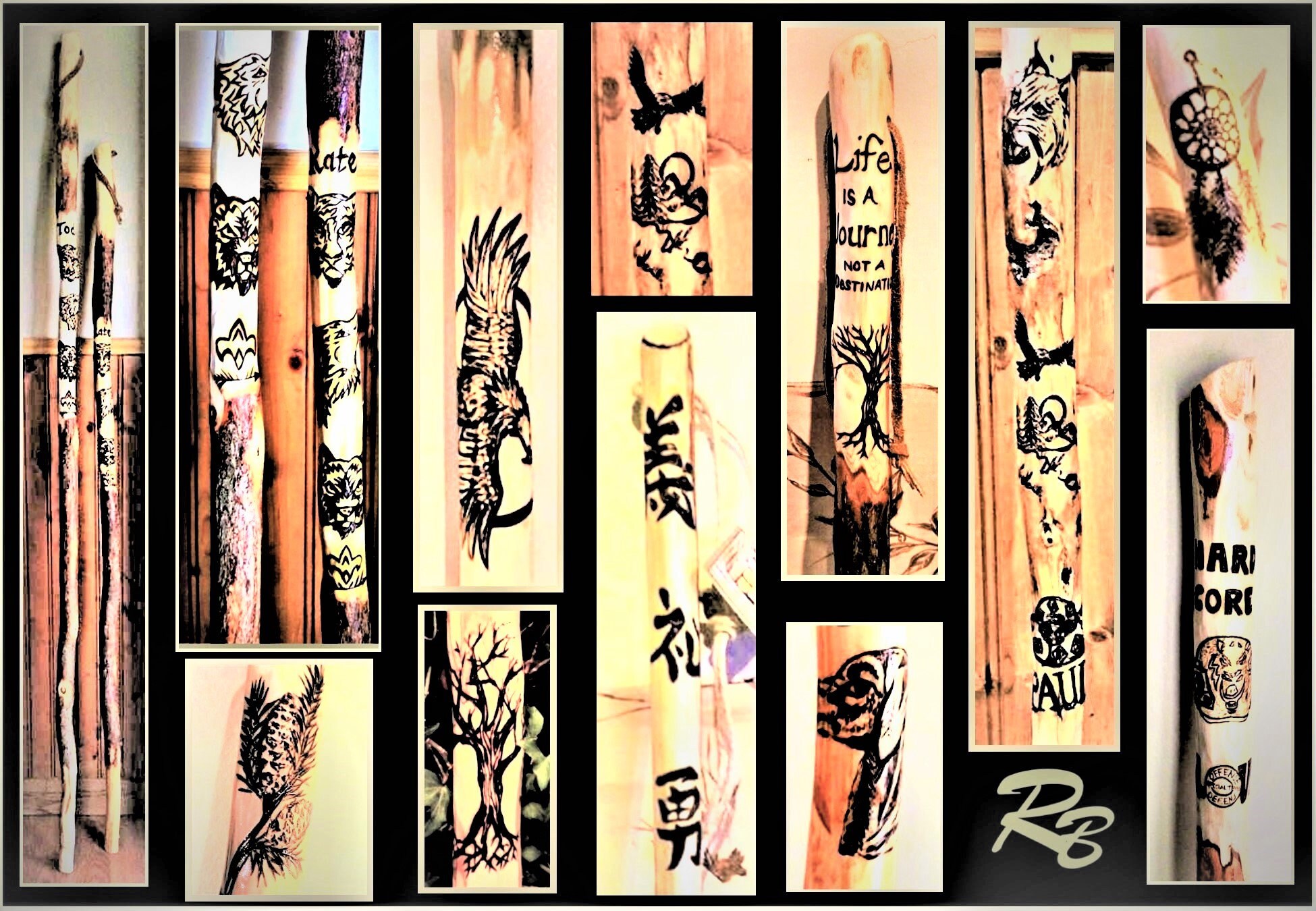 Stick | Unique One of a Kind Hiking Sticks, walking sticksCustom created for you, no stamps or machines used,I create each design by hand, so any design or image you wouldlike can be created!Feel Free to Message me with design Ideas and words you would like ArtisticCreationsbyRose [!at] comcast.netFrom My