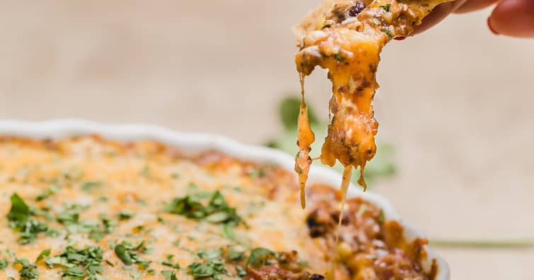 Black Bean Dip | This warm black bean dip is bursting with flavor thanks to black beans, chipotle chiles, adobo sauce, chili powder, corn, and an abundance of cheese! A party and game day must!