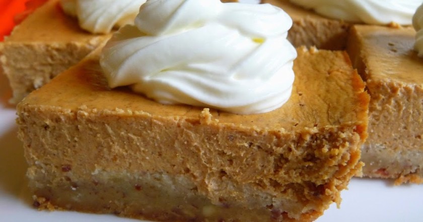 Pumpkin Cheesecake | SOUR CREAM PUMPKIN CHEESECAKE BARS Rich pumpkin bars, with a firm, thick crust that tastes high-carb. These were super-g…