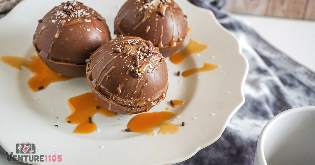 #Hot Cocoa | Make hot salted caramel hot chocolate never never before! These hot cocoa bombs are filled with caramel and marshmallows.